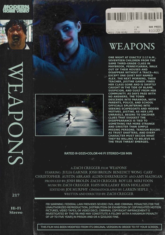 This is a custom tape of 'Weapons’. The VHS tape contains over 3 hours you can record on. I do not own any rights of this movie. The Box was cut by hand and put together by one person. The Label was carefully put on by one single person by hand. Please allow up to 2 weeks for your order to be shipped. I accept no refunds, all sales are final. If you have any questions. Message me on Instagram @Modernhomevideo. If you made a purchase by accident you can be issued a refund minus the tax provided by the website. If your VCR damages your tape, I am not obligated to send you another copy. Make sure to put the right adress on your order and information. If the tape you purchased sent somewhere else, that is not my fault. If your tape arrives damaged and broken make sure to send proof of the damage via Instagram and I will deal with it.